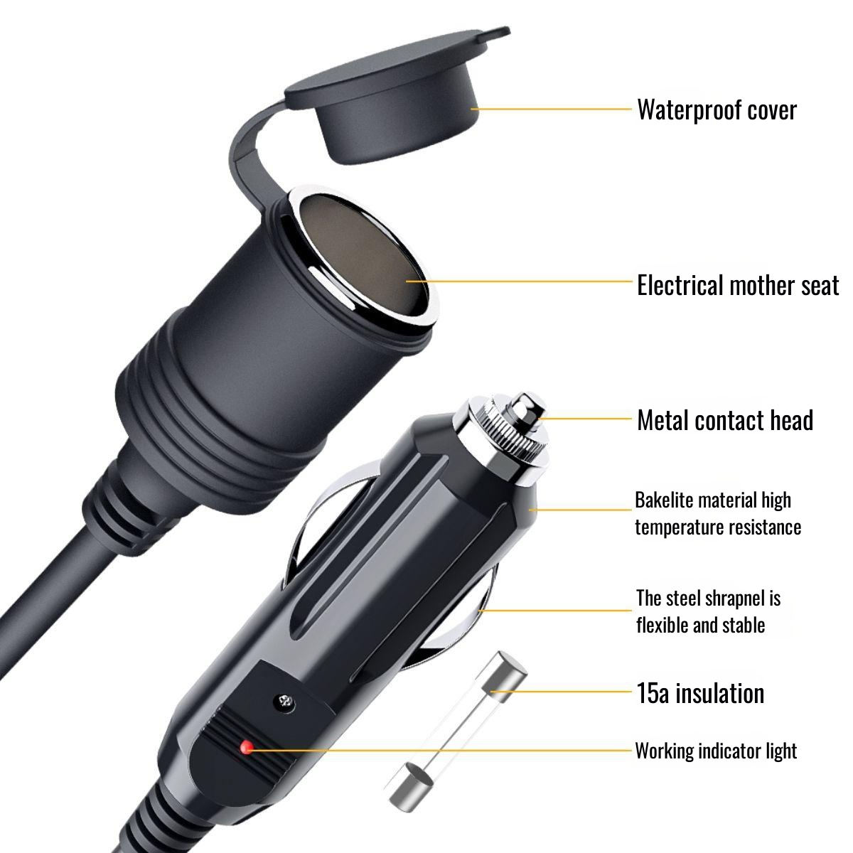 Car cigarette lighter plug extension line male to female seat car cigarette lighter hole extension l