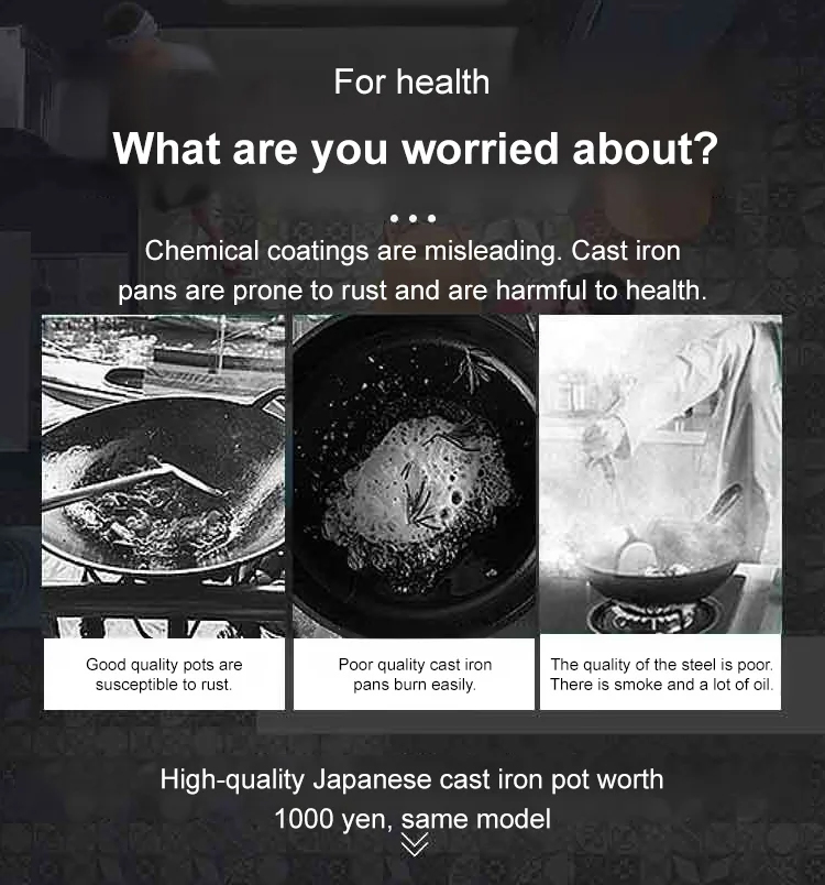 ✨Hand-forged iron pans must undergo seasoning before shipping, so simply rinse with water at home to achieve non-stick performance. Should sticking occur, we will provide ten times the compensation!👍