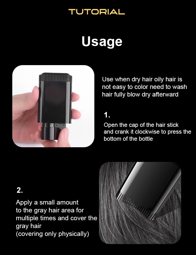 It's about the size of a lipstick, portable and ready to go. Simply apply to gray hair areas for instant coverage. One bottle lasts for six months and eliminates the need for frequent hair coloring.